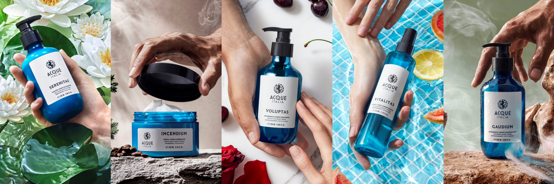 Acque di Italia is zorgvuldig ontworpen en gemaakt in Italië als een viering van een uniek erfgoed, trouw aan de traditionele praktijken van het oude welzijn.